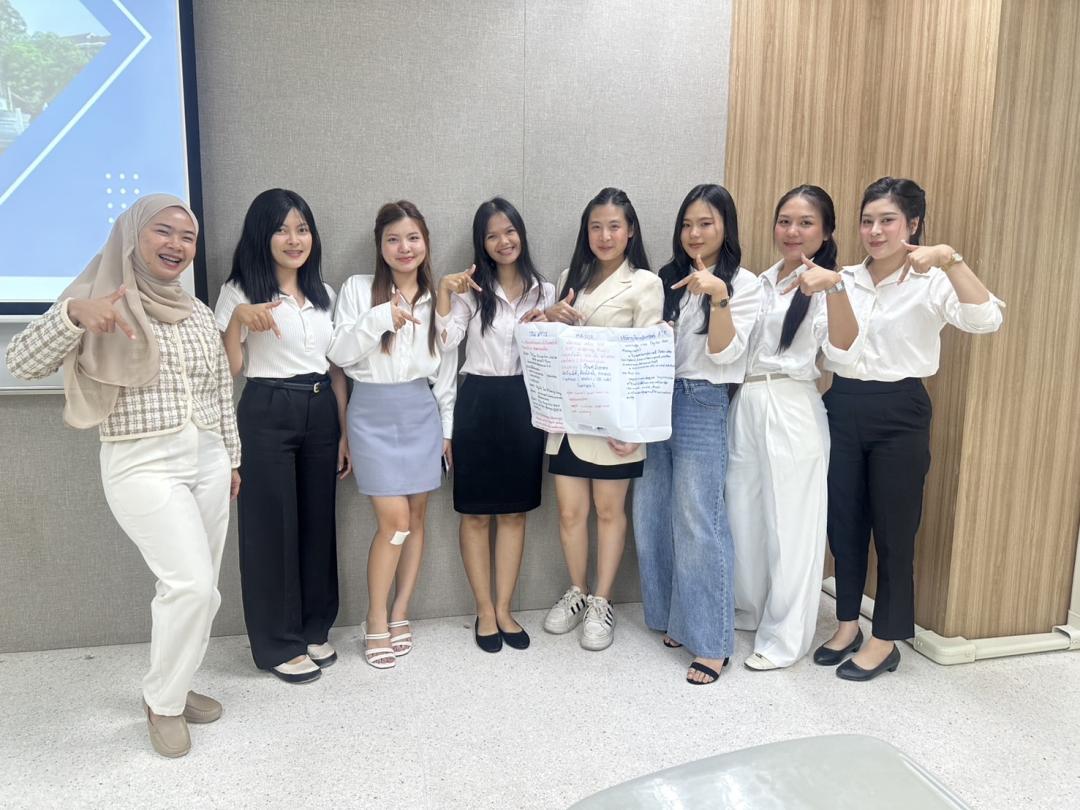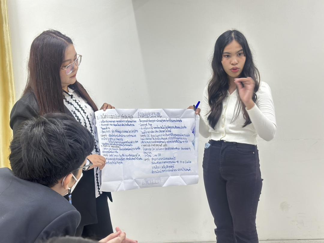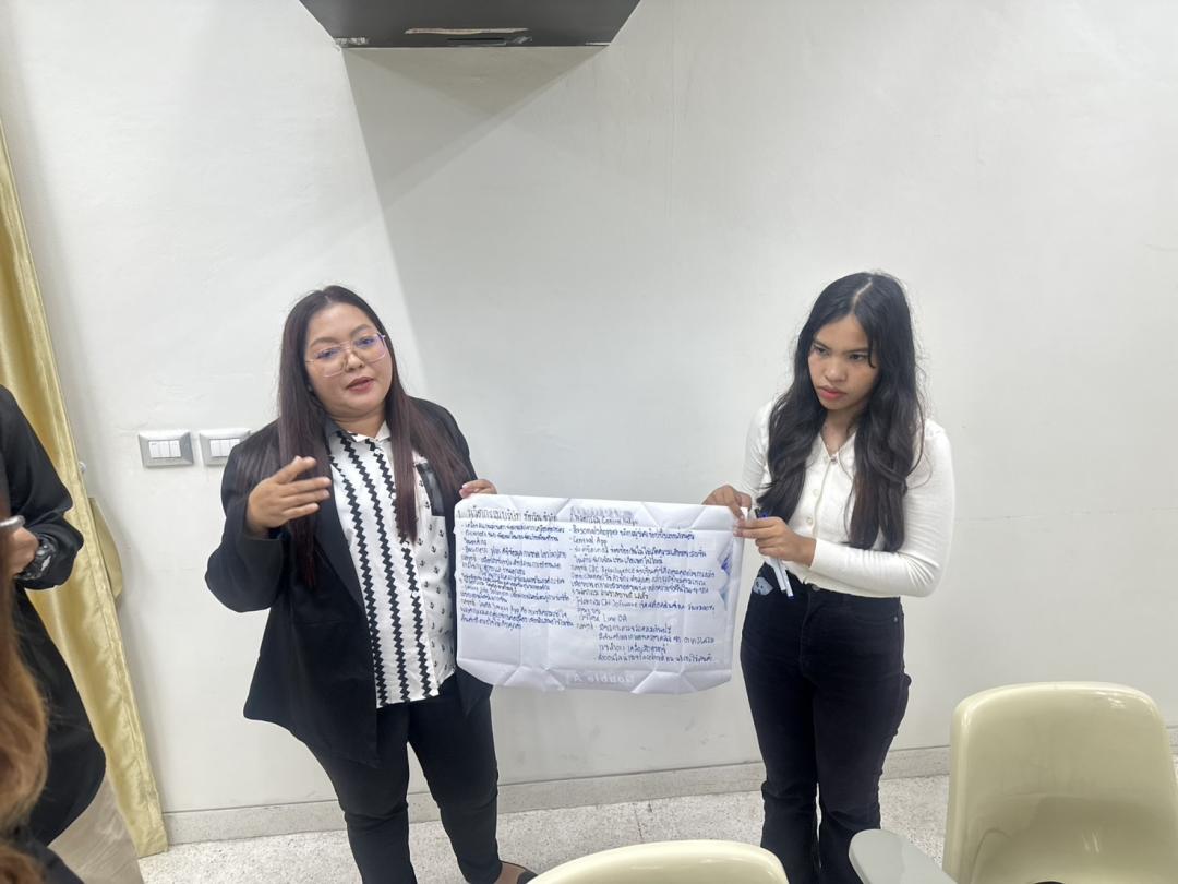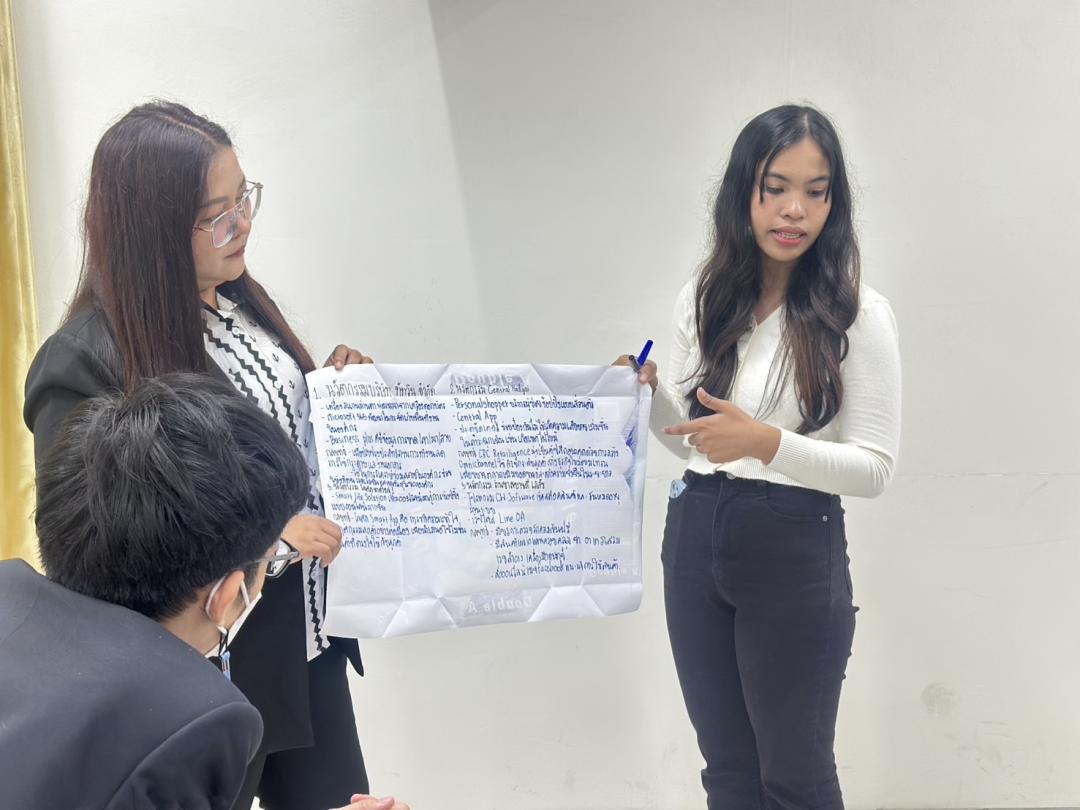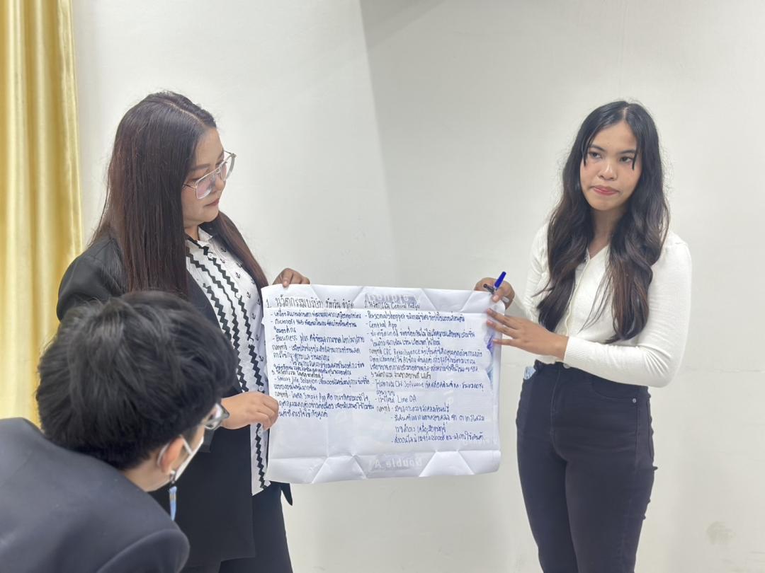 หัวข้อที่หยิบมาพูดคุยคือ “นวัตกรรมและกลยุทธ์ขององค์กรธุรกิจ” แต่ละกลุ่มหมุนเวียนไปเสริมความคิด เติมไอเดียใหม่ ๆ ให้กันและกัน จนออกมาเป็นมุมมองหลากหลายที่สามารถต่อยอดสู่โปรเจคจริง เพื่อยกระดับการทำงานขององค์กรได้อย่างสร้างสรรค์