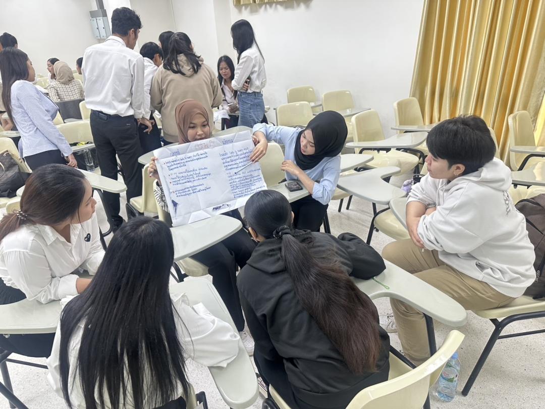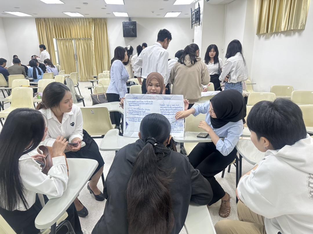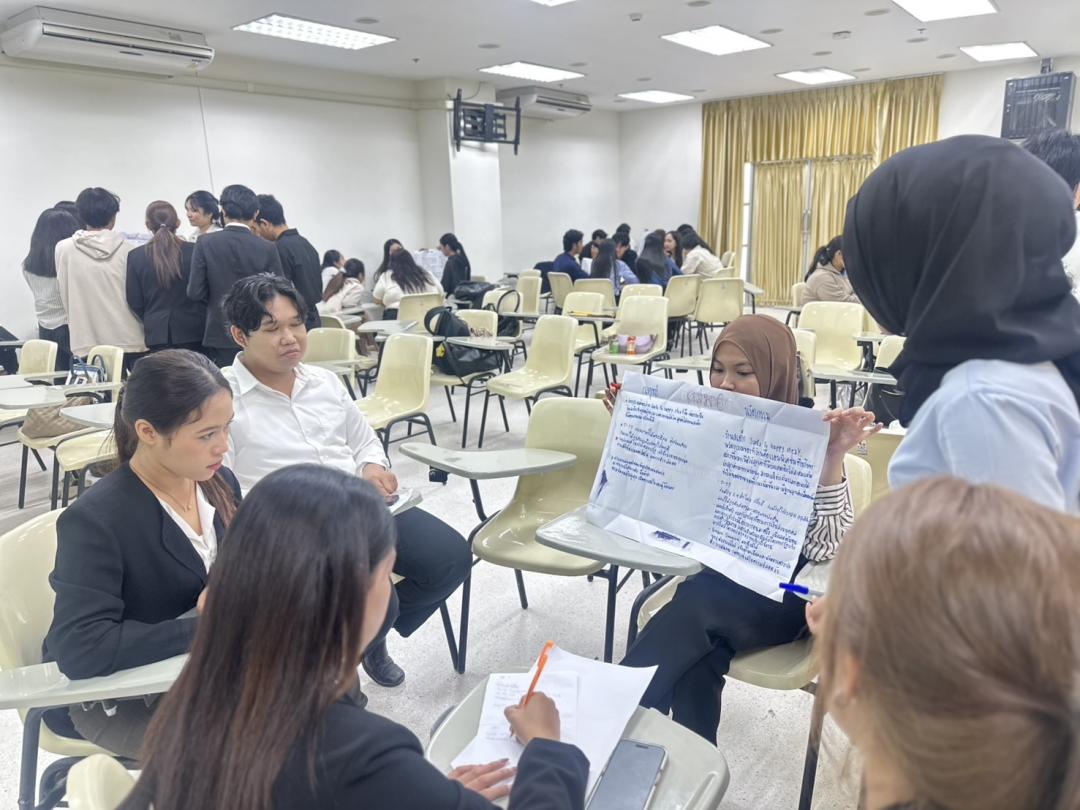 วันที่ 24 สิงหาคม 2568 นิสิตหลักสูตรการค้าสมัยใหม่และโลจิสติกส์ ได้สัมผัสการเรียนรู้แบบ Active Learning ที่ผู้เรียนคือศูนย์กลางจริง ๆ ครั้งนี้อาจารย์พาเข้าสู่กิจกรรมด้วยเทคนิค World Café Learning Method เปลี่ยนบรรยากาศการเรียน พร้อมจำลองสถานการณ์ให้ทุกคนเป็นนักธุรกิจ ที่มานั่งคุยชิล ๆ ในคาเฟ่ แต่เต็มไปด้วยการแชร์ไอเดีย แลกเปลี่ยนประสบการณ์ และต่อยอดความรู้กันแบบไม่มีกั๊ก