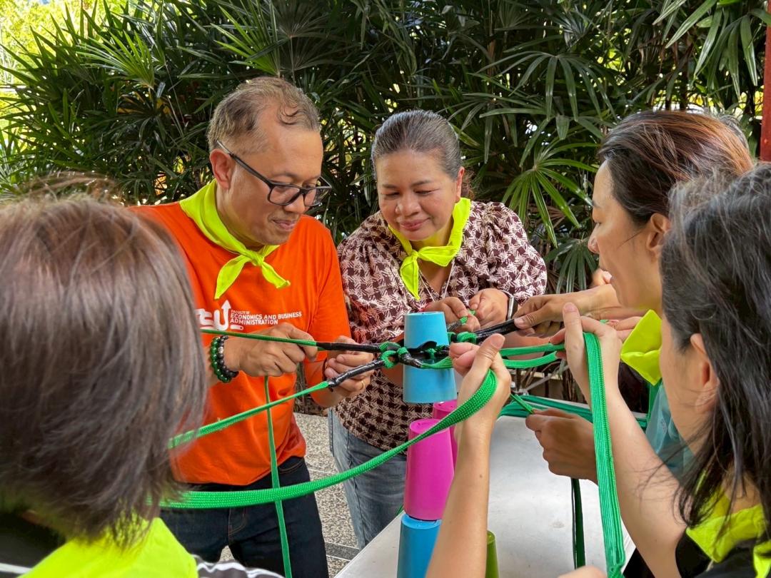 ต่อเนื่องในวันที่ 20 กันยายน 2568 ดร.พินิจ ดวงจินดา คณบดีคณะเศรษฐศาสตร์และบริหารธุรกิจ ให้เกียรติเป็นประธานเปิดโครงการ จากนั้นร่วมทำ Art Therapy เพื่อเยียวยาและผ่อนคลายจิตใจ เปิดโอกาสให้ผู้เข้าร่วมได้แสดงออกและเรียนรู้ตนเองมากขึ้น ช่วงบ่ายเป็นกิจกรรม Warm-Up Activity, Synergy Team และ Walk Really ที่ออกแบบมาเพื่อกระตุ้นพลังทีม สร้างการเรียนรู้ร่วมกัน และฝึกทักษะการทำงานเป็นกลุ่มอย่างสนุกสนาน