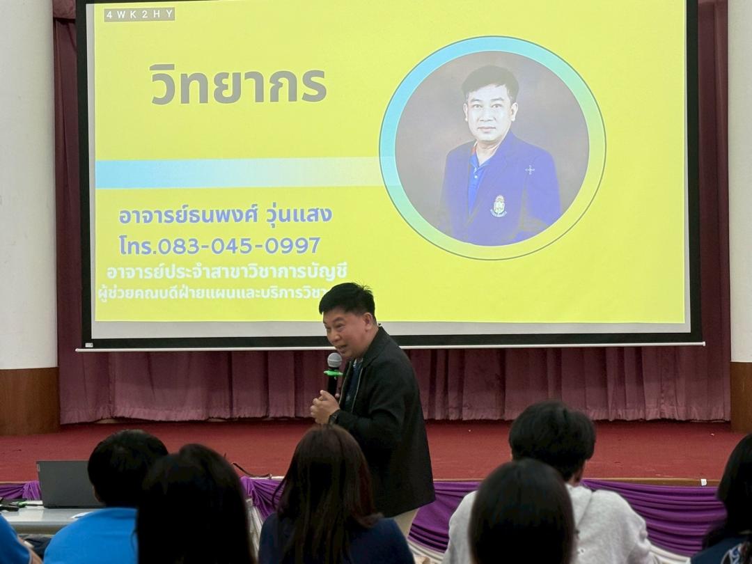 ทั้งนี้ ได้รับเกียรติจาก อาจารย์ธนพงศ์ วุ่นแสง อาจารย์ประจำสาขาวิชาการบัญชี ผู้ช่วยคณบดีฝ่ายแผนและบริการวิชาการ คณะบริหารธุรกิจ มหาวิทยาลัยหาดใหญ่ เป็นวิทยากร