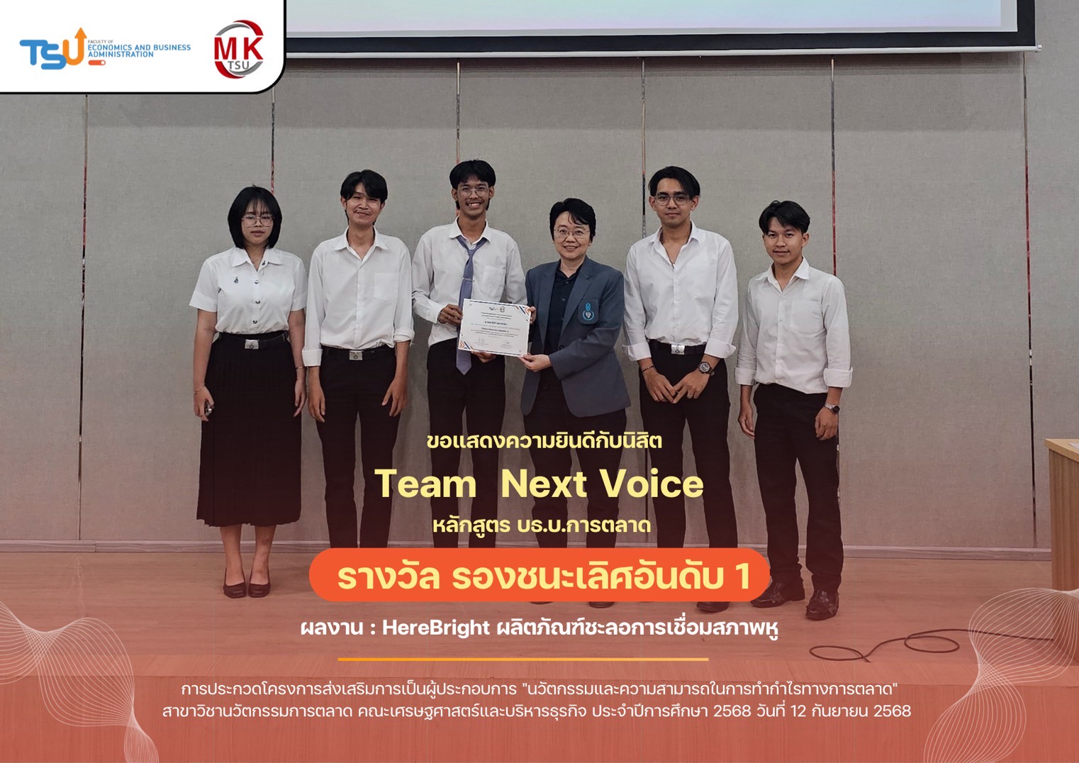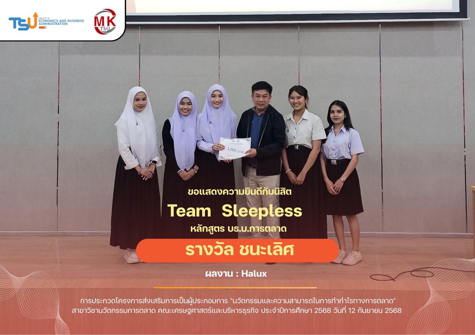 โครงการส่งเสริมการเป็นผู้ประกอบการ “นวัตกรรมและความสามารถในการทำกำไรทางการตลาด” ประจำปีการศึกษา 2568