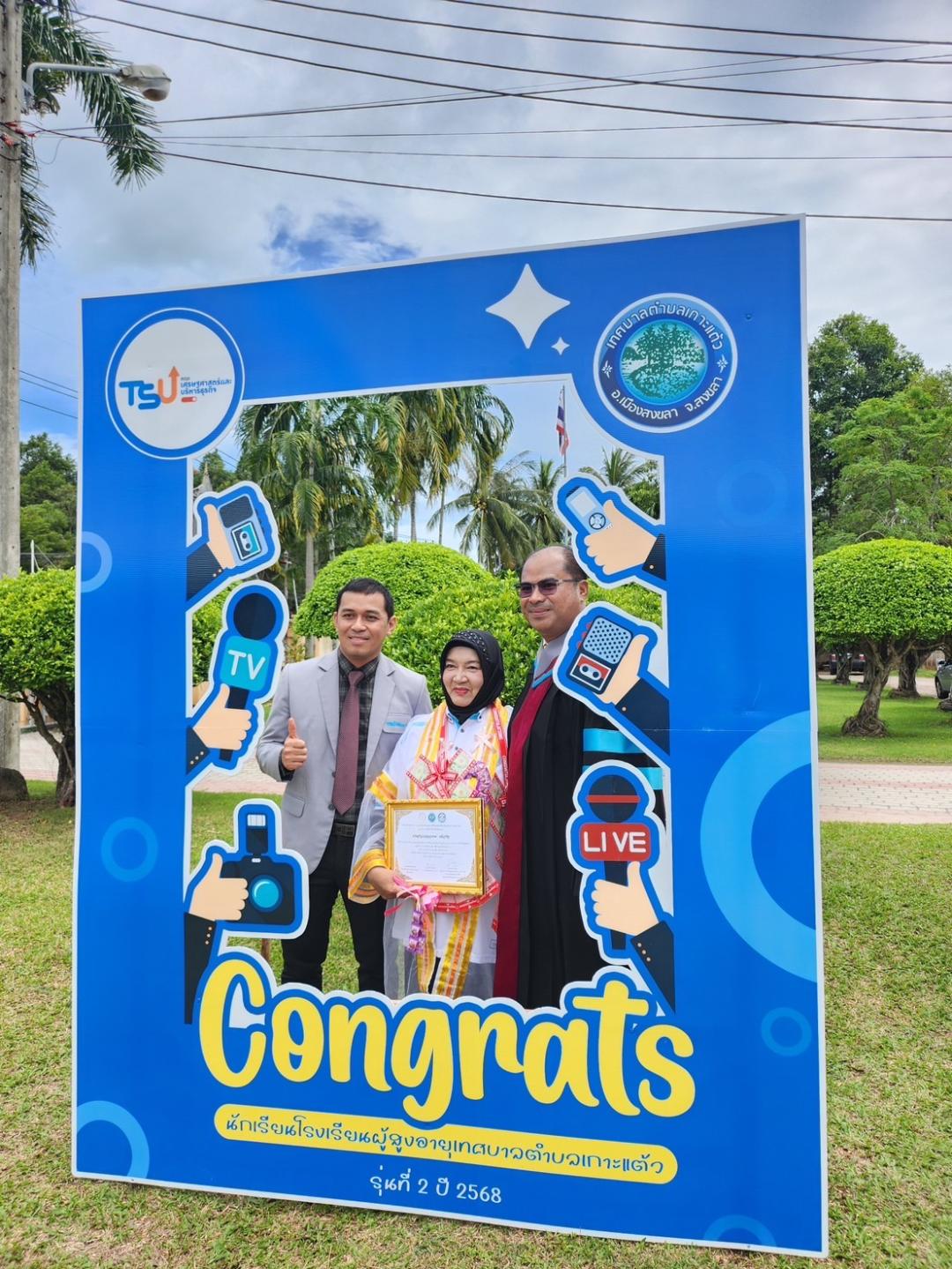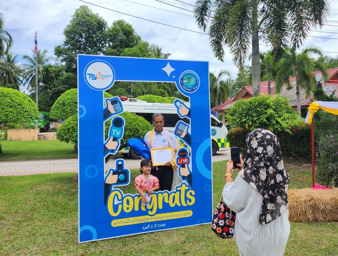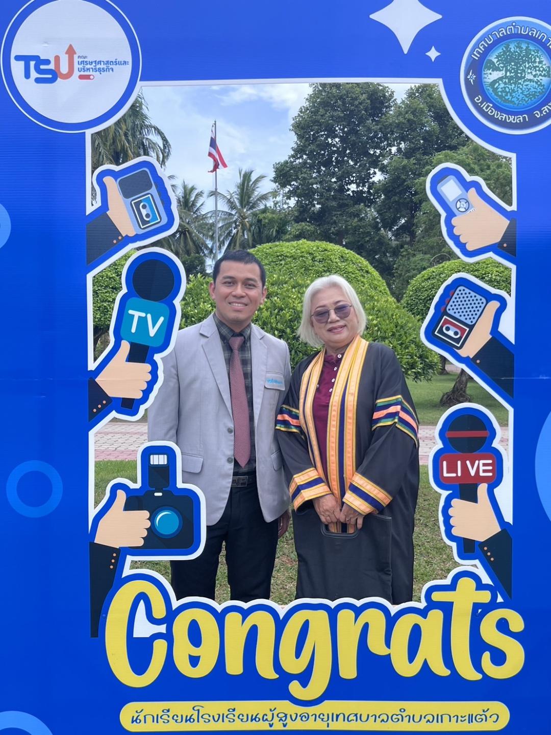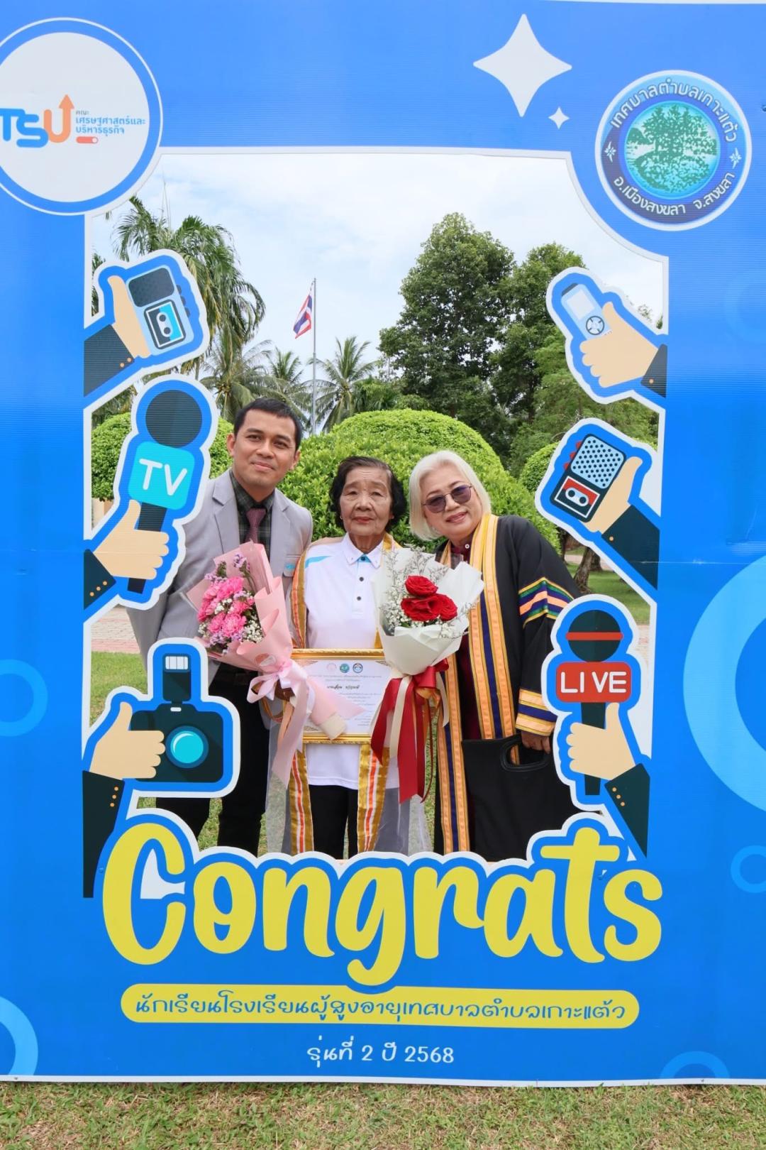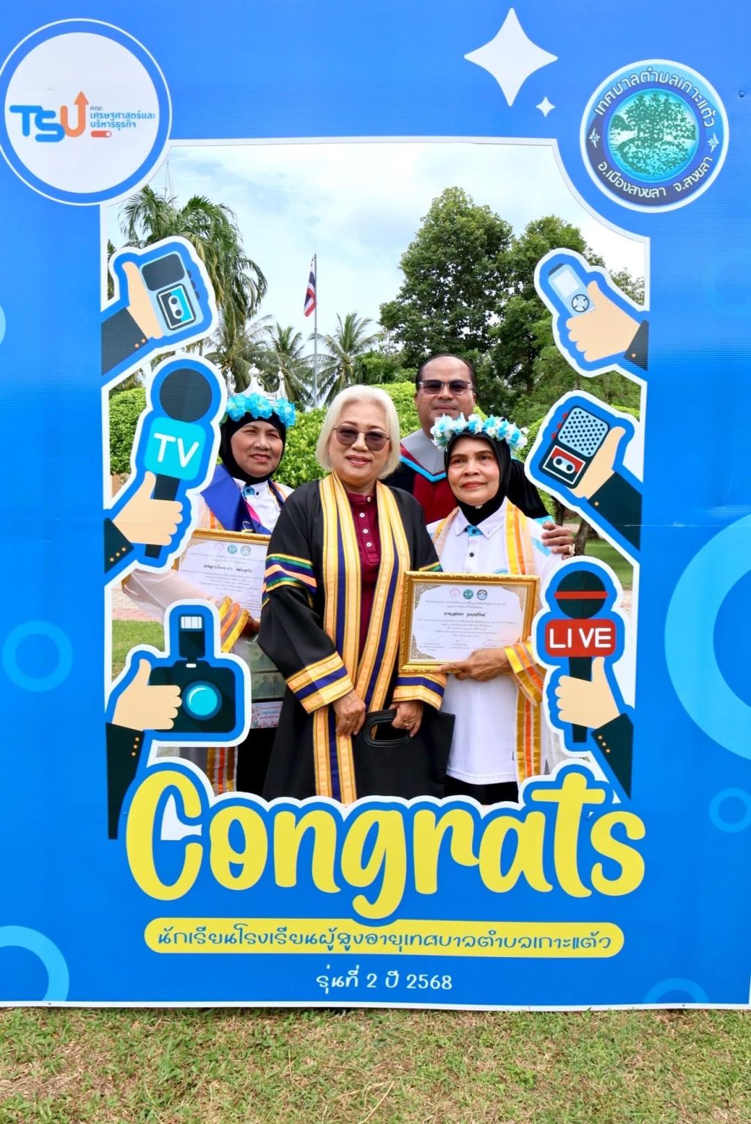 คณะเศรษฐศาสตร์และบริหารธุรกิจ มหาวิทยาลัยทักษิณ ร่วมแสดงความยินดีในพิธีมอบเกียรติบัตรนักเรียนผู้สูงอายุเทศบาลตำบลเกาะแต้ว รุ่นที่ 2 เพื่อเสริมสร้างการเรียนรู้ตลอดชีวิต