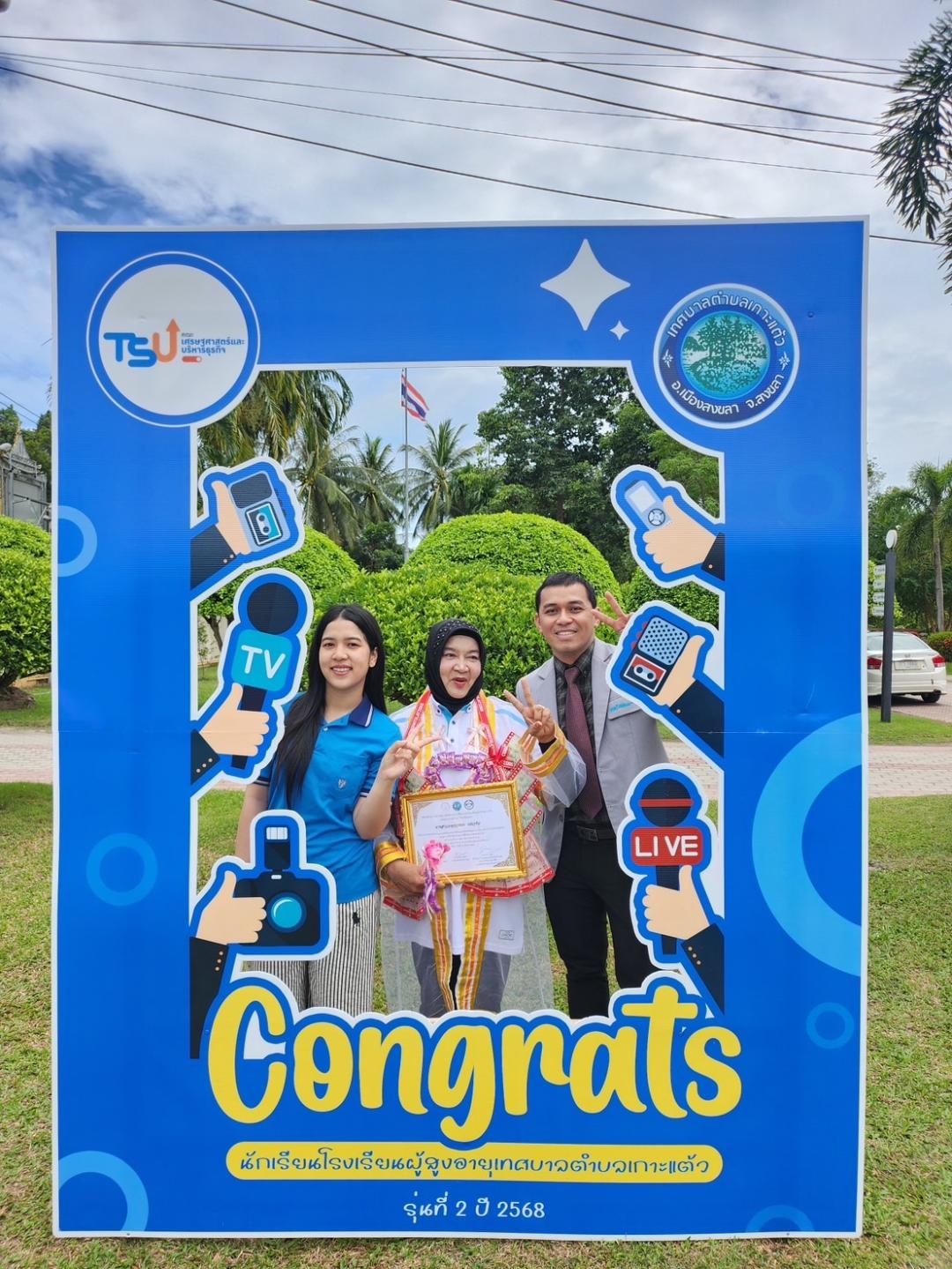 ร่วมแสดงความยินดีในพิธีมอบเกียรติบัตรนักเรียนผู้สูงอายุเทศบาลตำบลเกาะแต้ว รุ่นที่ 2
