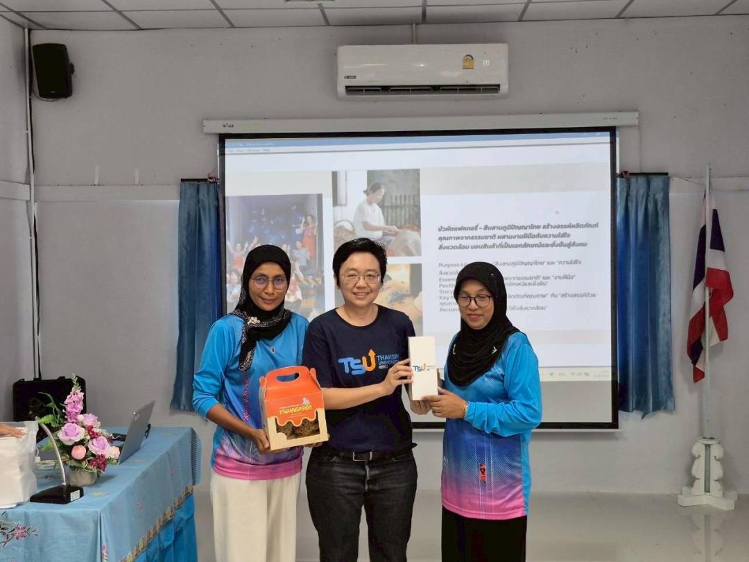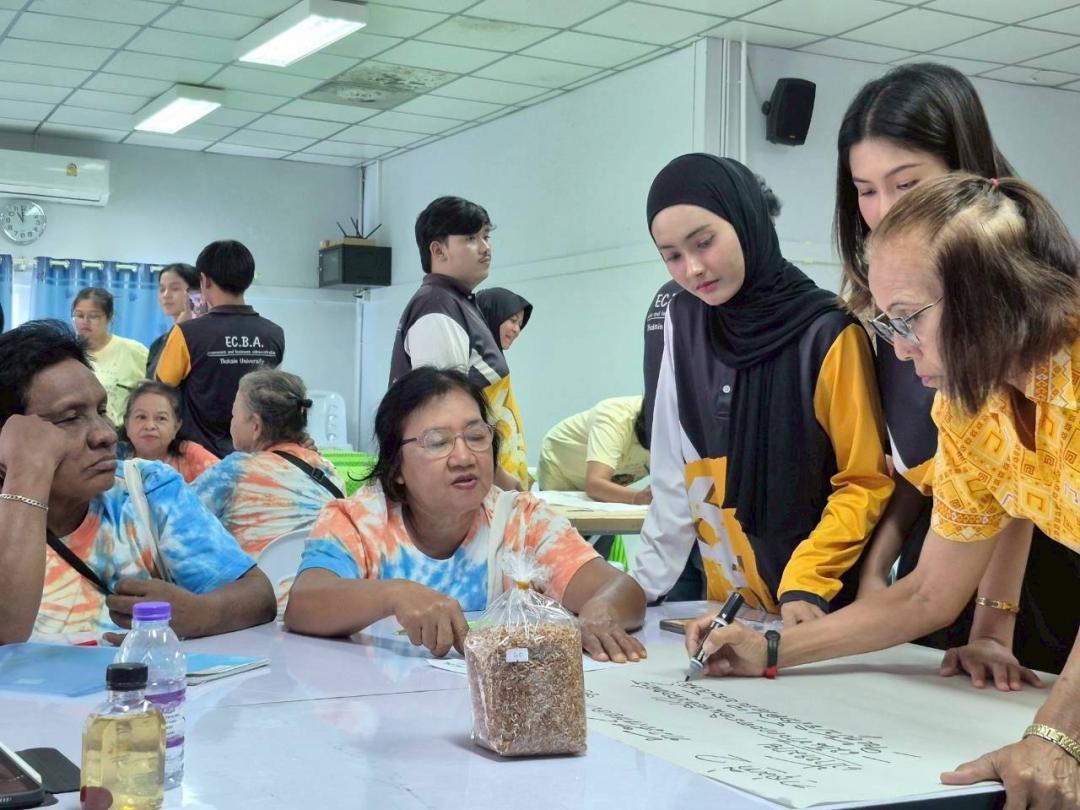 นิสิตสาขาวิชาการตลาด คณะเศรษฐศาสตร์และบริหารธุรกิจ มหาวิทยาลัยทักษิณ จัดอบรม Storytelling Canvas ยกระดับสินค้าชุมชนตำบลเกาะแต้วด้วย Soft Power