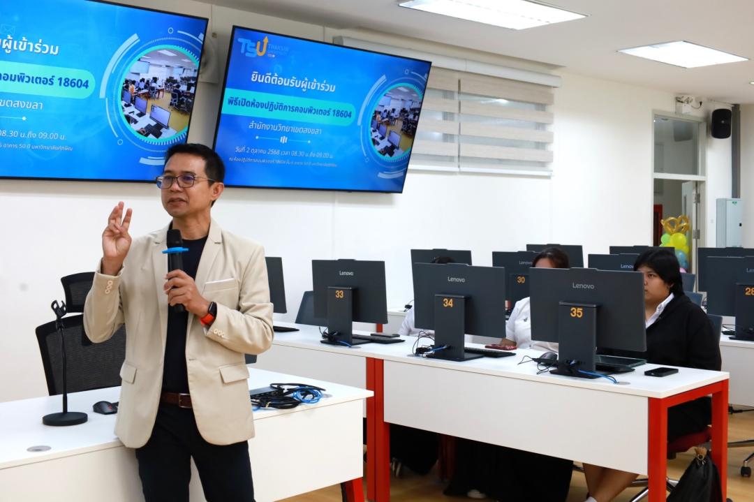 ห้องปฏิบัติการคอมพิวเตอร์ 18604 จัดตั้งขึ้นเพื่อรองรับการเรียนการสอน การวิจัย และการพัฒนาทักษะด้านดิจิทัลของนิสิต มหาวิทยาลัยทักษิณ ให้ก้าวทันต่อการเปลี่ยนแปลงในยุคดิจิทัล อีกทั้งยังเป็นทรัพยากรกลางในการสนับสนุนการจัดการเรียนการสอนที่ทันสมัยและมีประสิทธิภาพ