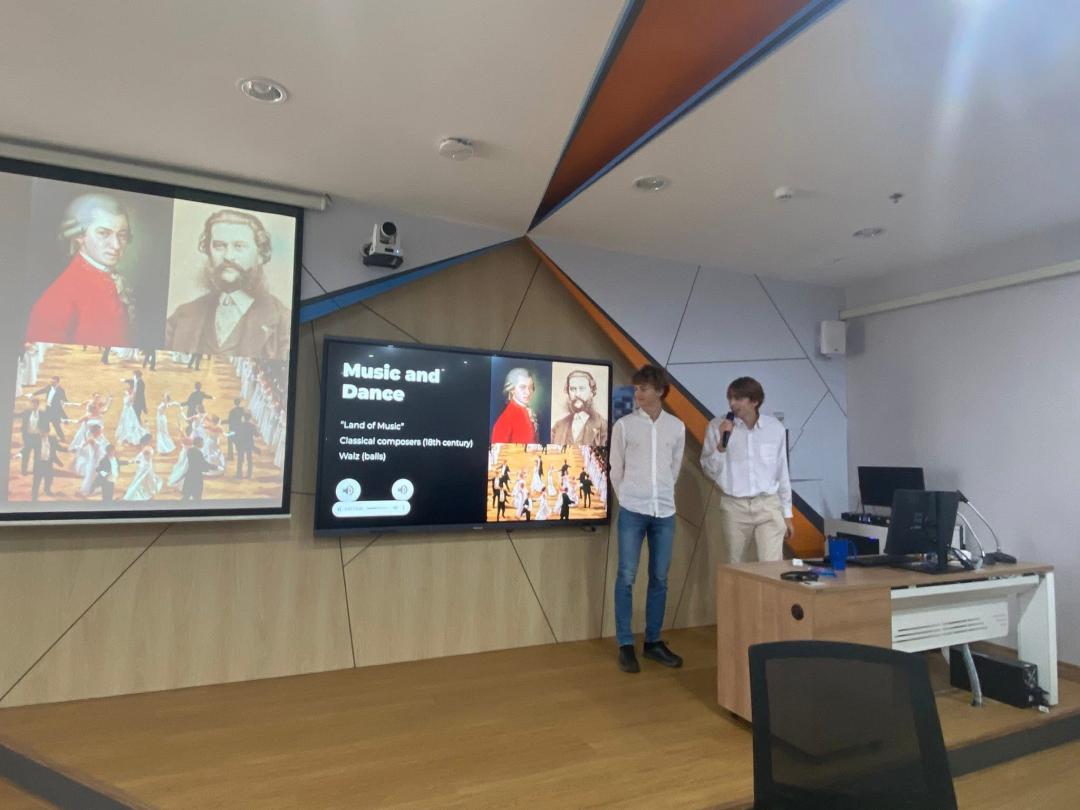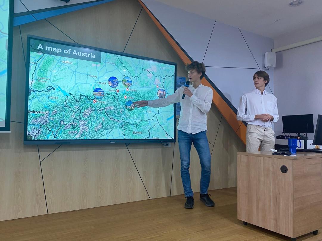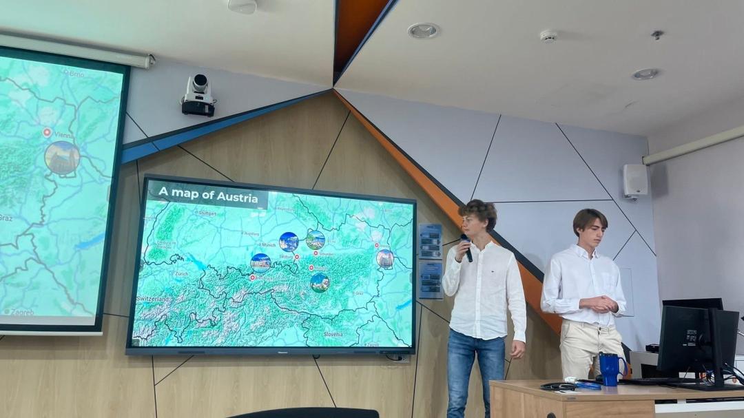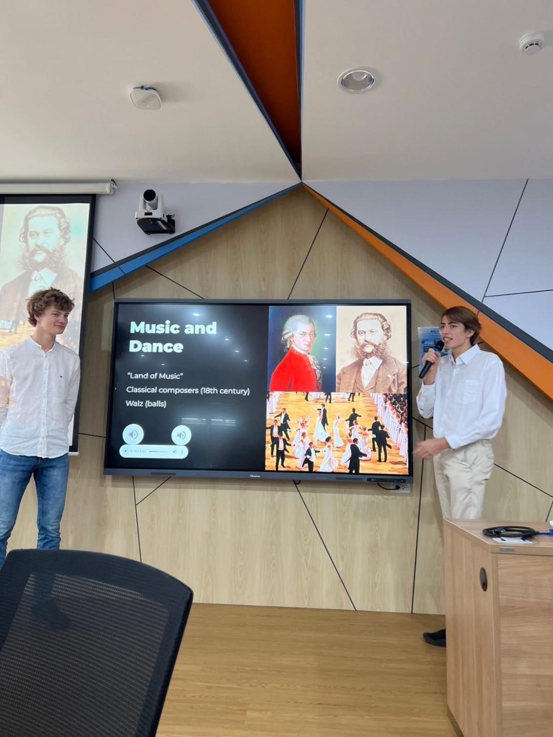 The presentation provided a comprehensive overview of Austria, including its prominent tourist attractions, major sports, and notable aspects of Austrian cuisine, beverages, and cultural traditions. Following the presentation, students were given the opportunity to pose questions regarding Austria and to practice English and basic German with the guest speakers.
