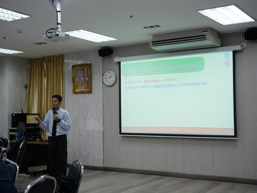 โดยได้รับเกียรติจาก คุณโกสินธุ์ ศิริรักษ์ เจ้าหน้าที่บริหารงานทั่วไป ระดับชำนาญการ และบรรณาธิการจัดการวารสาร Trends in Sciences จากบัณฑิตวิทยาลัย มหาวิทยาลัยวลัยลักษณ์ มาเป็นวิทยากรถ่ายทอดความรู้และประสบการณ์