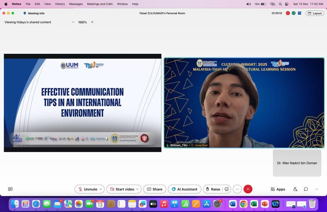 The seminar provided a platform for student representatives from both universities to exchange ideas and discuss key topics, including effective communication in international environments, comparative learning practices between Malaysia and Thailand, and customs norms and social ethics within Malaysian–Thai culture.