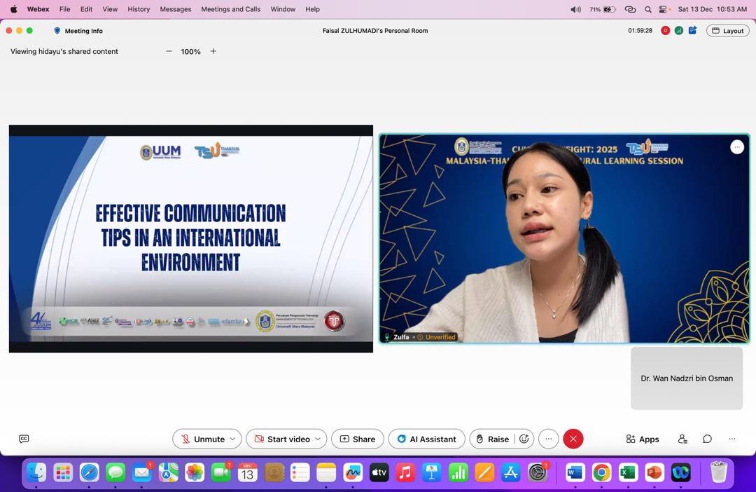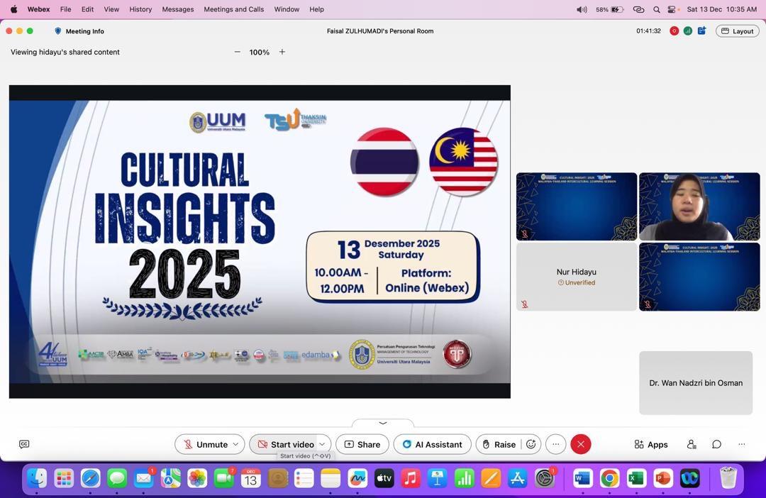 Students from the Modern Trade and Logistics Program, Faculty of Economics and Business Administration, in collaboration with student leaders from STML, Universiti Utara Malaysia (UUM), successfully organized an online seminar under the project “Cultural Insights 2025” on 13 December 2025.