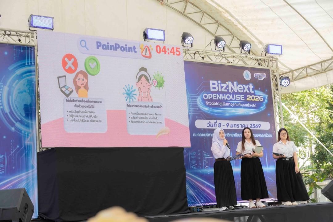 นิสิตคณะเศรษฐศาสตร์และบริหารธุรกิจ มหาวิทยาลัยทักษิณ เข้าร่วมการแข่งขัน Pitch ผู้ประกอบการนวัตกรรมรุ่นใหม่ ภายในงาน BizNext OpenHouse 2026 “ก้าวต่อไปสู่เส้นทางธุรกิจที่คุณสร้างได้”