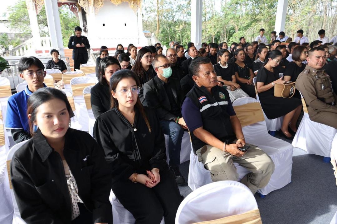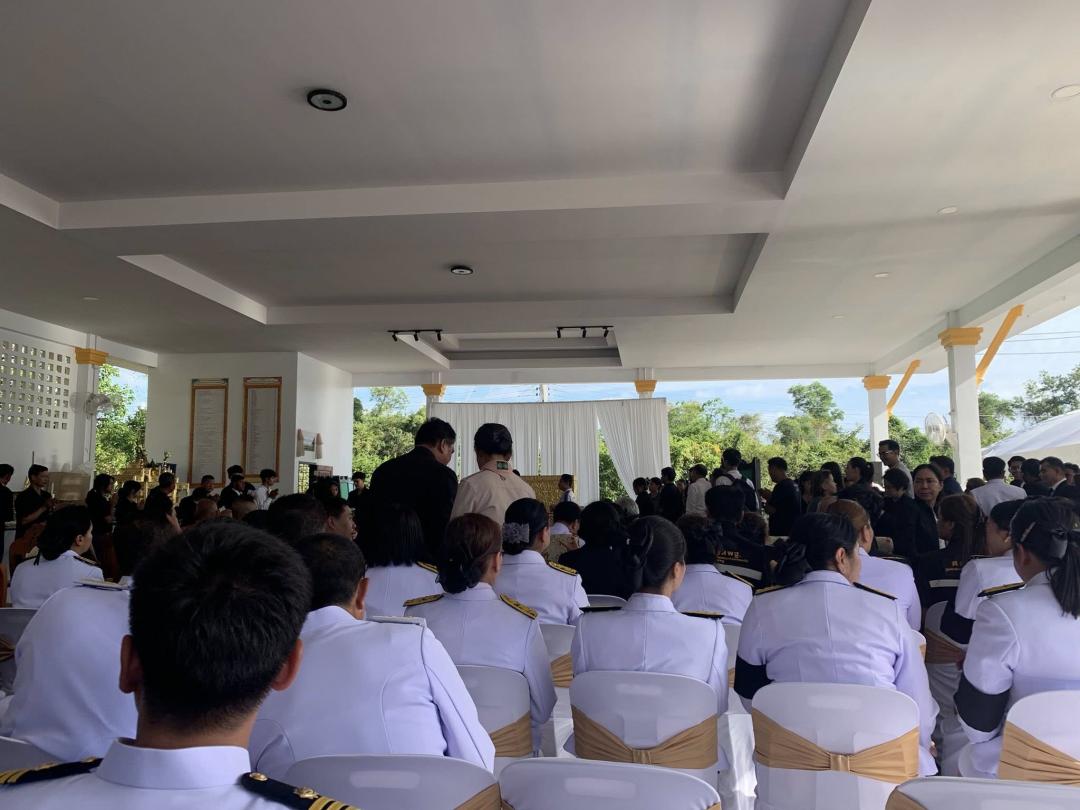 การเข้าร่วมพิธีในครั้งนี้ อาจารย์ ดร.พินิจ ดวงจินดา ได้นำคณะบุคลากรร่วมวางพวงหรีดเคารพศพ พร้อมทั้งร่วมแสดงความอาลัยและให้กำลังใจแก่นิสิตและครอบครัวสินสโมสร ท่ามกลางบรรยากาศที่เต็มไปด้วยความโศกเศร้าและความอาลัย