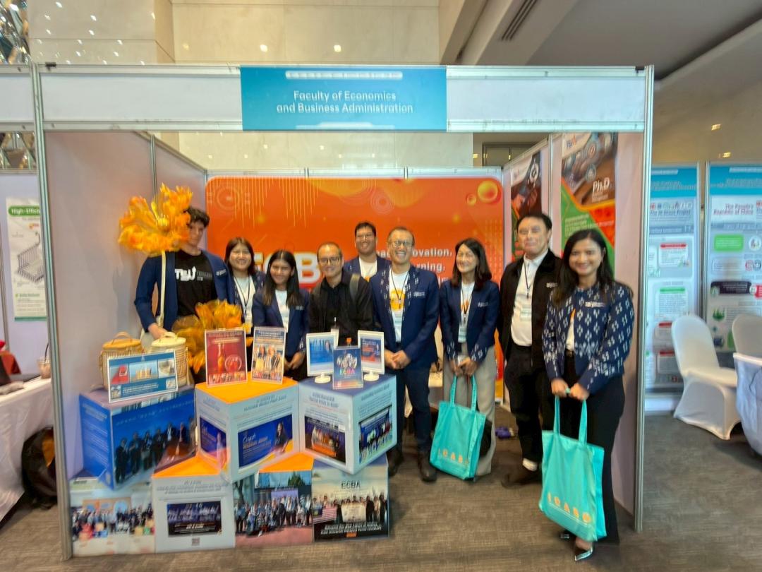 ในการนี้ คณะเศรษฐศาสตร์และบริหารธุรกิจ นำโดย อาจารย์ ดร.พินิจ ดวงจินดา พร้อมด้วยคณะผู้บริหาร คณาจารย์ และบุคลากร เข้าร่วมการประชุมอย่างพร้อมเพรียง โดยคณะฯ ได้จัดบูธนิทรรศการเพื่อนำเสนอผลงานทางวิชาการ สะท้อนบทบาทสำคัญในการขับเคลื่อนการพัฒนาอย่างยั่งยืนในยุคดิจิทัล