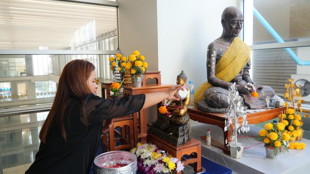 นอกจากนี้ บุคลากรยังได้ร่วมกิจกรรมสรงน้ำพระพุทธรูป ณ บริเวณหน้าสำนักงานคณะ เพื่อความเป็นสิริมงคลในการเริ่มต้นปีใหม่ไทย การจัดกิจกรรมในครั้งนี้นับเป็นการทำนุบำรุงศิลปวัฒนธรรมไทยให้คงอยู่สืบไป ควบคู่กับการปลูกฝังคุณค่าความกตัญญูกตเวทีต่อสิ่งศักดิ์สิทธิ์และบรรพบุรุษ อันเป็นพลังสำคัญในการเสริมสร้างขวัญและกำลังใจแก่บุคลากรในการปฏิบัติงานต่อไป